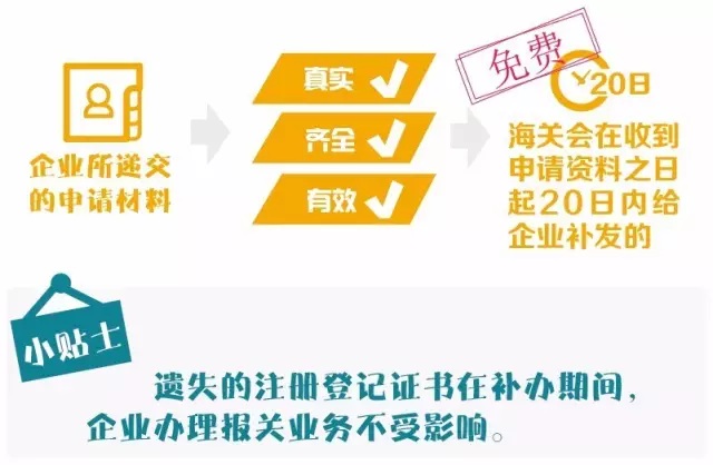 企业注册登记证书遗失无需在报刊上刊登遗失声明。企业可直接向注册地海关递交《企业注册登记业务申请书》和企业书面情况说明报告申请补办。