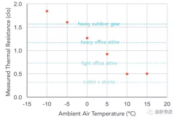 由热适应效应面料的制成的服装在温差加大的情况下也可以保证穿着舒适。假如在办公室、学校、工厂,每个人都穿这种热适应材料的服装,不仅可以减少暖气和冷气的需求,而且可以节能降耗。而如果可以把暖气降低2℃或者冷气提高2℃,那么国内的能量消耗和排放将会减少2%。