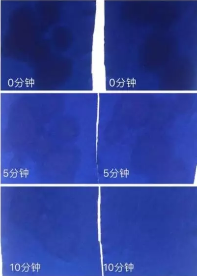 外层速干性测试,常规版在10分钟后仍有隐约可见的水印,而升级版在10分钟后可以完全干燥。