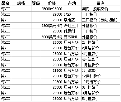 5月22日氨纶原料纯MDI市场行情
