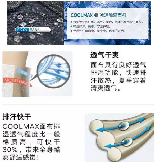 比如:牛仔新科技——美国杜邦科技面料COOLMAX