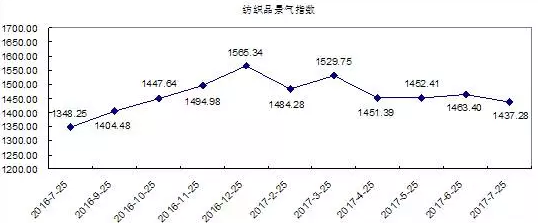 “中国·柯桥纺织指数”2017年7月总景气指数收于1437.28点,环比下跌1.78%,同比上涨6.60%。