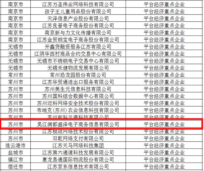 近日,江苏省发改委网站公告显示,中国绸都网(吴江绸都盛泽电子商务信息有限公司)荣获江苏省“平台经济重点企业”称号。