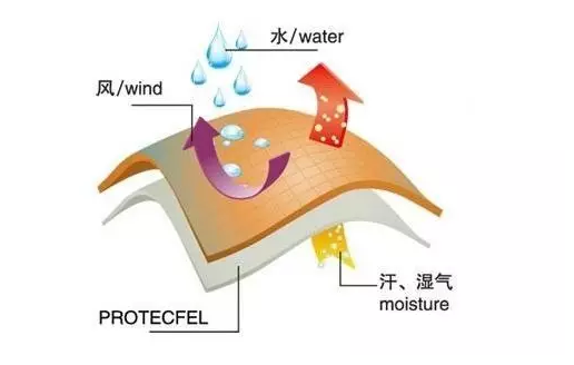 丙纶是让汗气移动,经由织物而到达织物外面。而外层的汗水无法跑到里层丙纶上,被锁到外层,形成了单向导湿的现象。