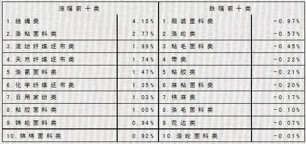 本期坯布类价格指数呈小幅下跌走势。近期坯布市场行情继续回缩,订单数量回缩。近期市场冬季坯布下单继续回缩,春季坯布订单仍显有限,部分坯布企业产出仍有下降。其中:天然纤维坯布需求继续回缩,价格指数呈小幅下跌走势,纯棉纱卡坯布、纯棉帆布坯布、纯棉府绸坯布、纯棉巴厘纱坯布市场成交继续回缩。混纺纤维坯布需求继续回缩,价格指数呈小幅下跌走势,T/C涤棉纱卡坯布、T/C涤棉府绸坯布、涤麻坯布、锦棉麻坯布市场价量继续回缩,拉动坯布类总体价格指数小幅下跌。但化学纤维坯布现货成交和下单环比回升,相对制约了坯布类总体价格指数的下跌幅度。